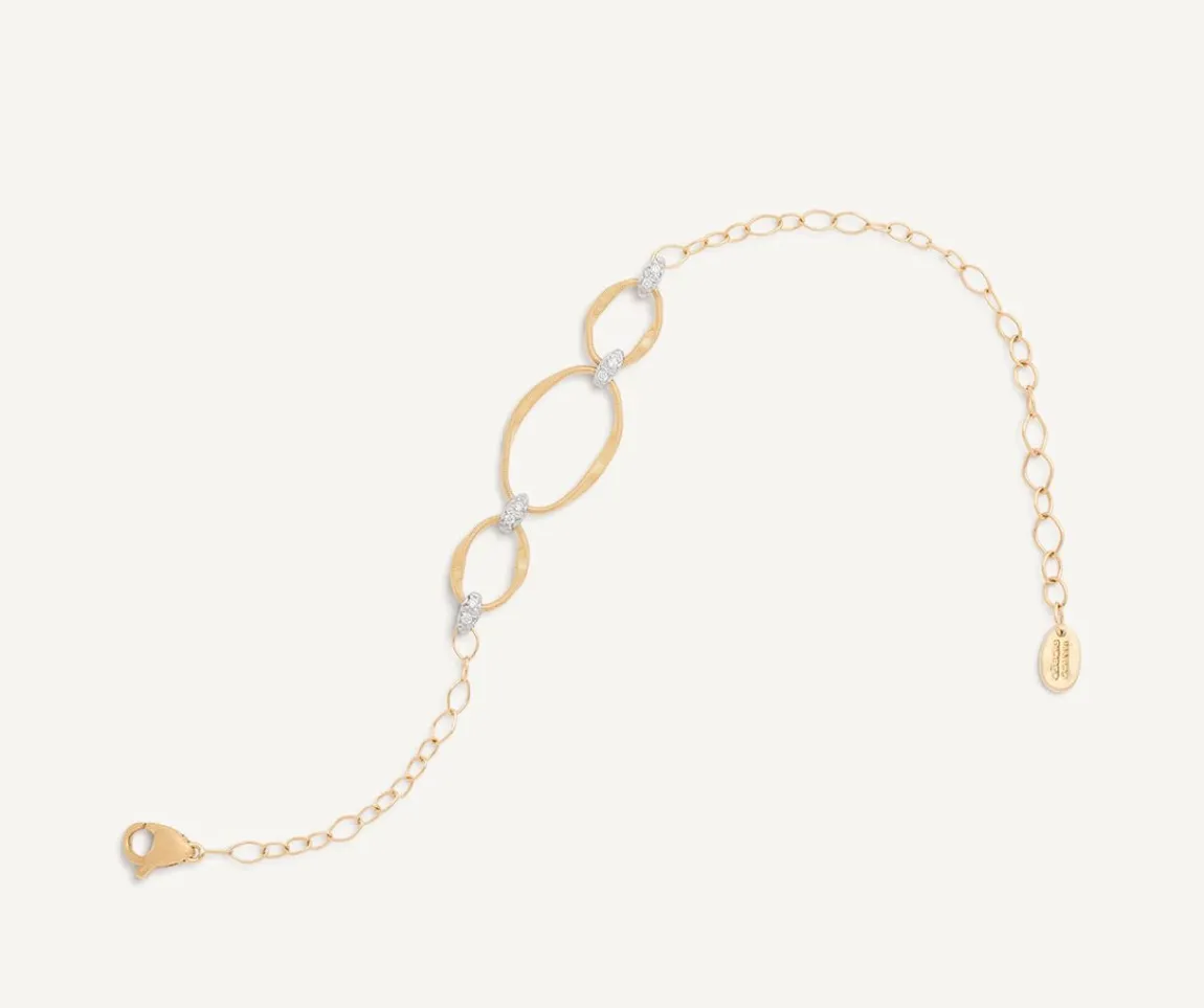 A Delicate 18Kt Yellow Gold Bracelet Characterised By Three Oval Twisted Coil Threads, Linked Together By Elegant Brilliant-Cut Diamond Paves. The Length Of The Chain Is Adjustable, Making It Versatile And Ensuring The Perfect Fit Around Every Wrist.