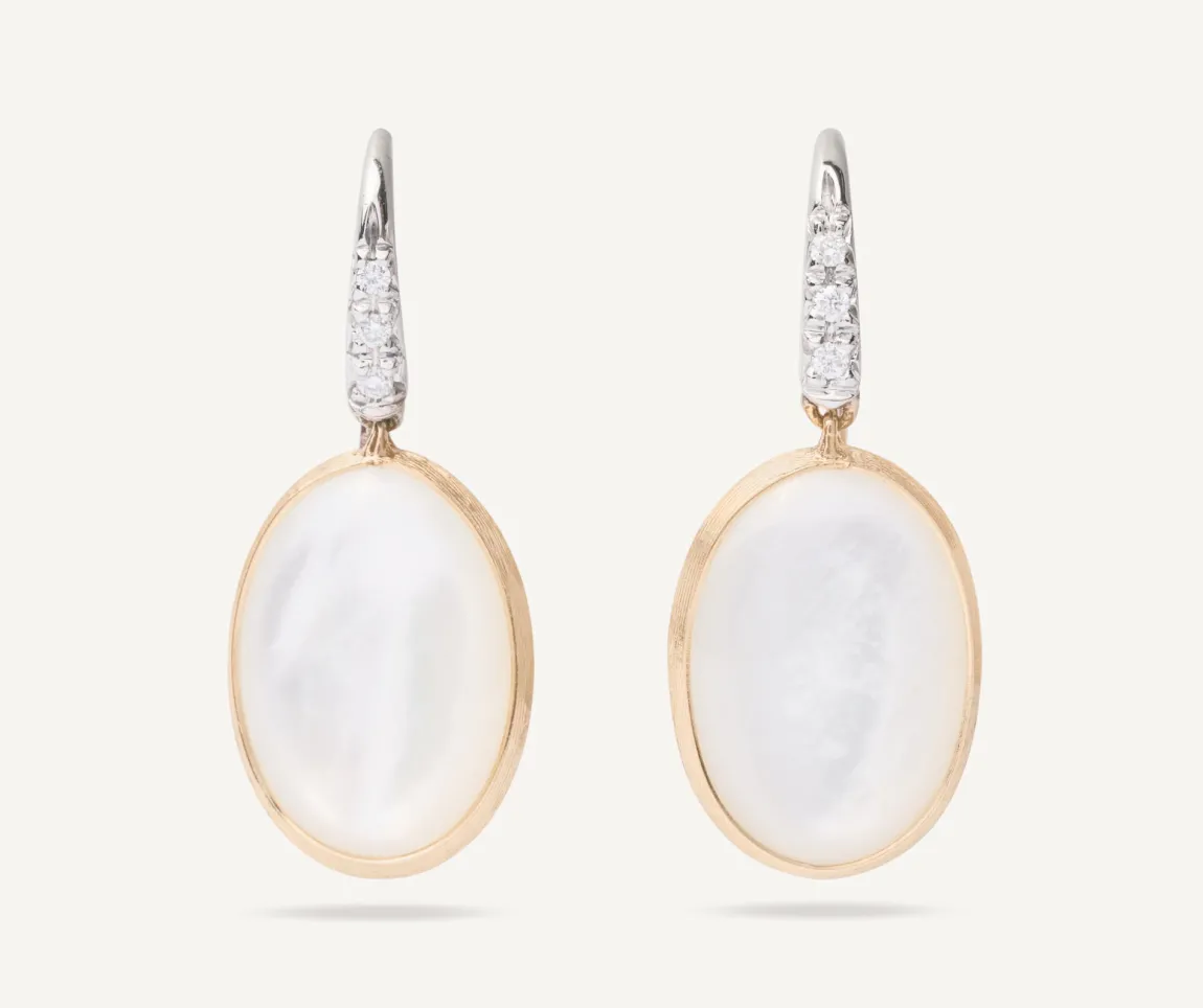 Marco Bicego Earrings|18Kt Yellow Gold Earrings With Mother-Of-Pearl And Diamond Hook