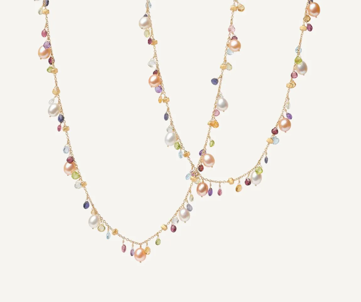 Long Necklace Of Natural Gemstones With A Characteristic Heart Cut Embellished With A Selection Of Freshwater Pearls And 18Kt Yellow Gold Details Hand Engraved With The Ancient Burin Technique. Colorful And Fun, It’S Perfect For Adding A Touch Of Color To Any Outfit.