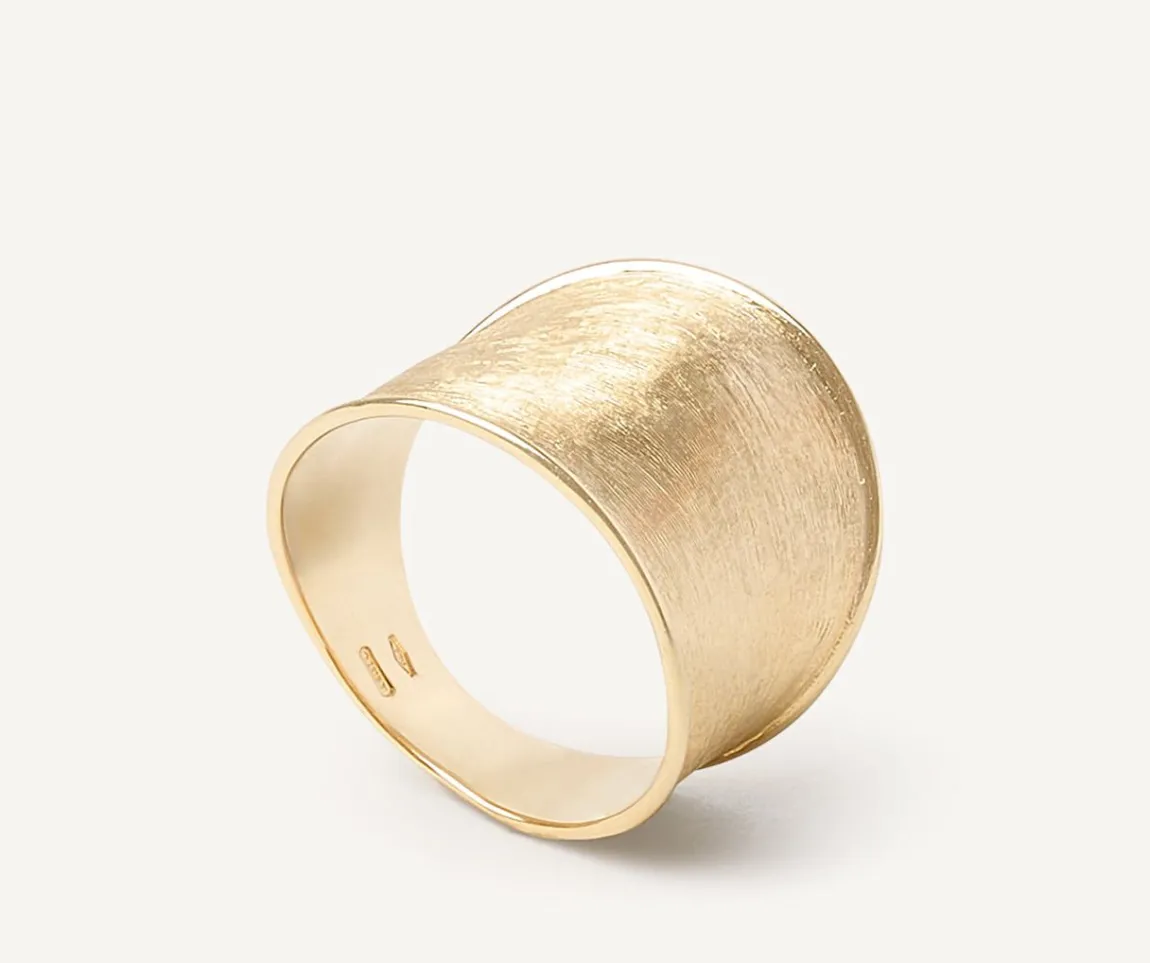 The 18Kt Yellow Gold Band Ring, With Its Irregular Surface And Linear Design, Has Been Finely Hand-Engraved Using An Ancient Florentine Technique, Granting It Extraordinary Lustre And A Silky Surface. A Unique Fit For An Elegant And Timeless Piece Of Jewellery.