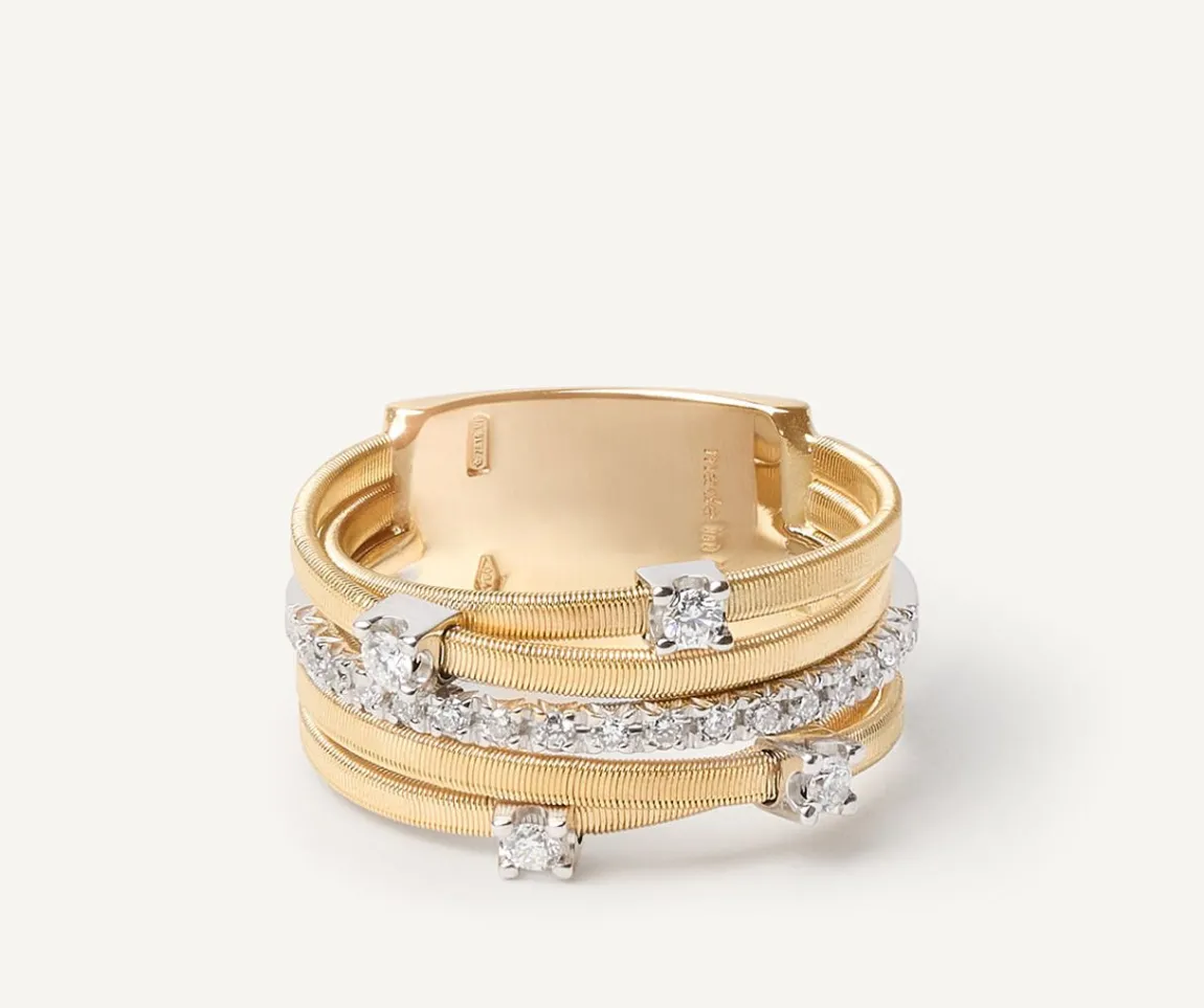 Marco Bicego Rings|Five-Band Yellow Gold Ring With Prong-Set Diamonds And A Diamond-Studded Plaque