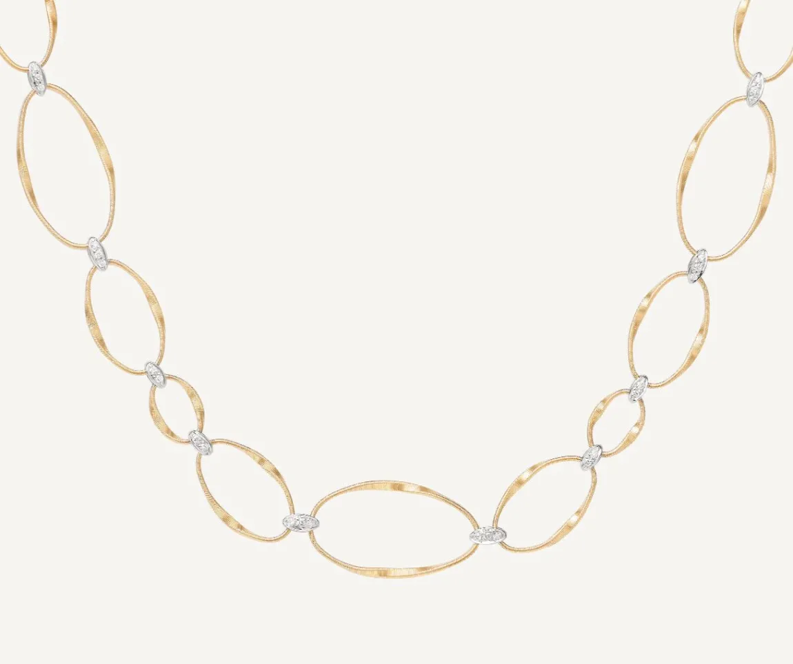 This Beautiful 18Kt Yellow Gold Necklace Features A Sequence Of Oval Twisted Coils, Interlinked By Sophisticated Diamond-Cut Pave Elements. Elegantly Refined, This Jewelry Piece Is A Veritable Must-Have.