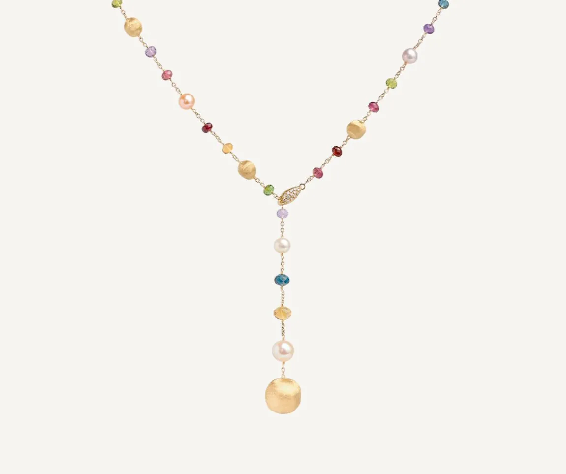Marco Bicego Necklaces|Mixed Gemstone And Pearls 18Kt Yellow Gold Lariat Necklace